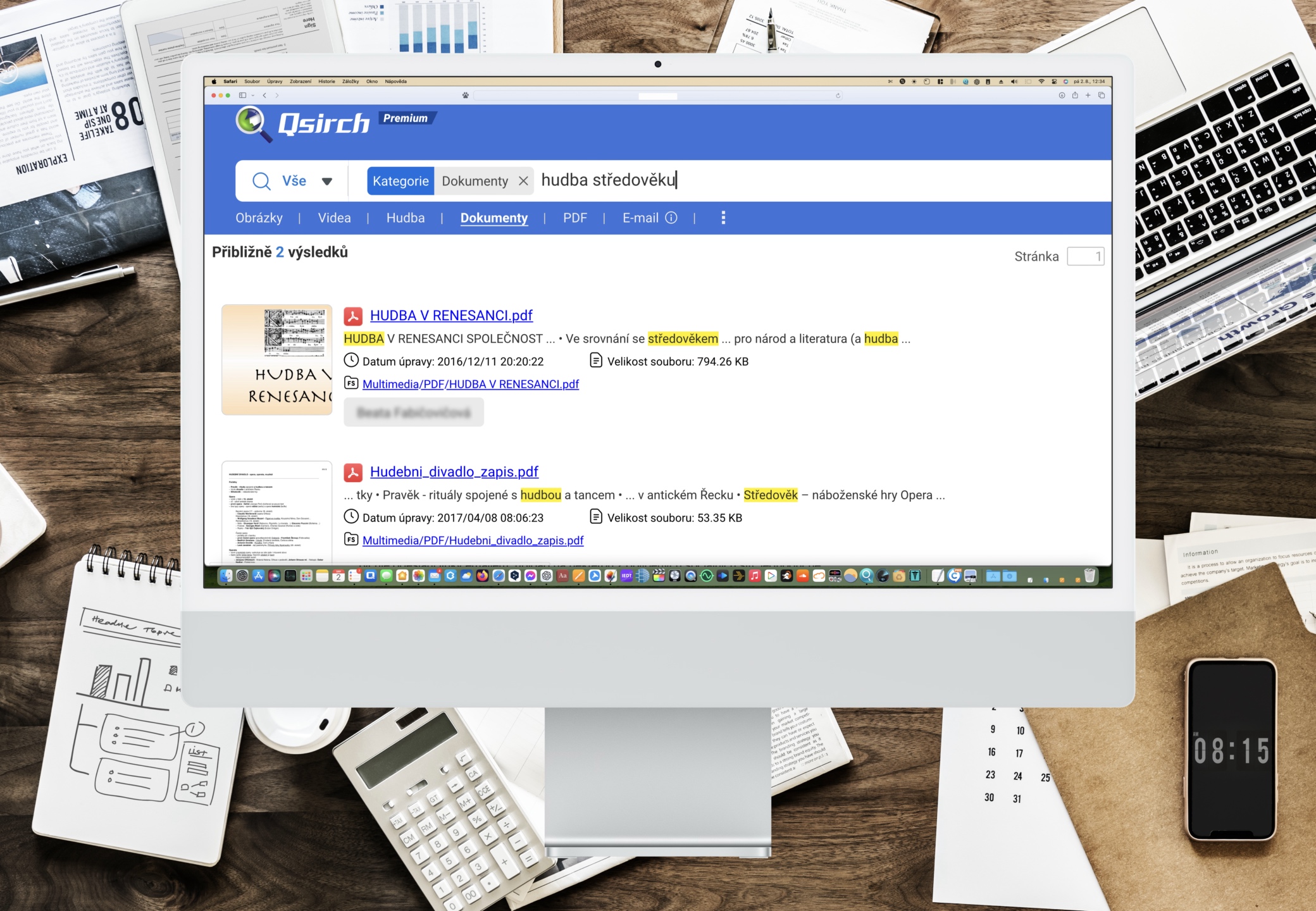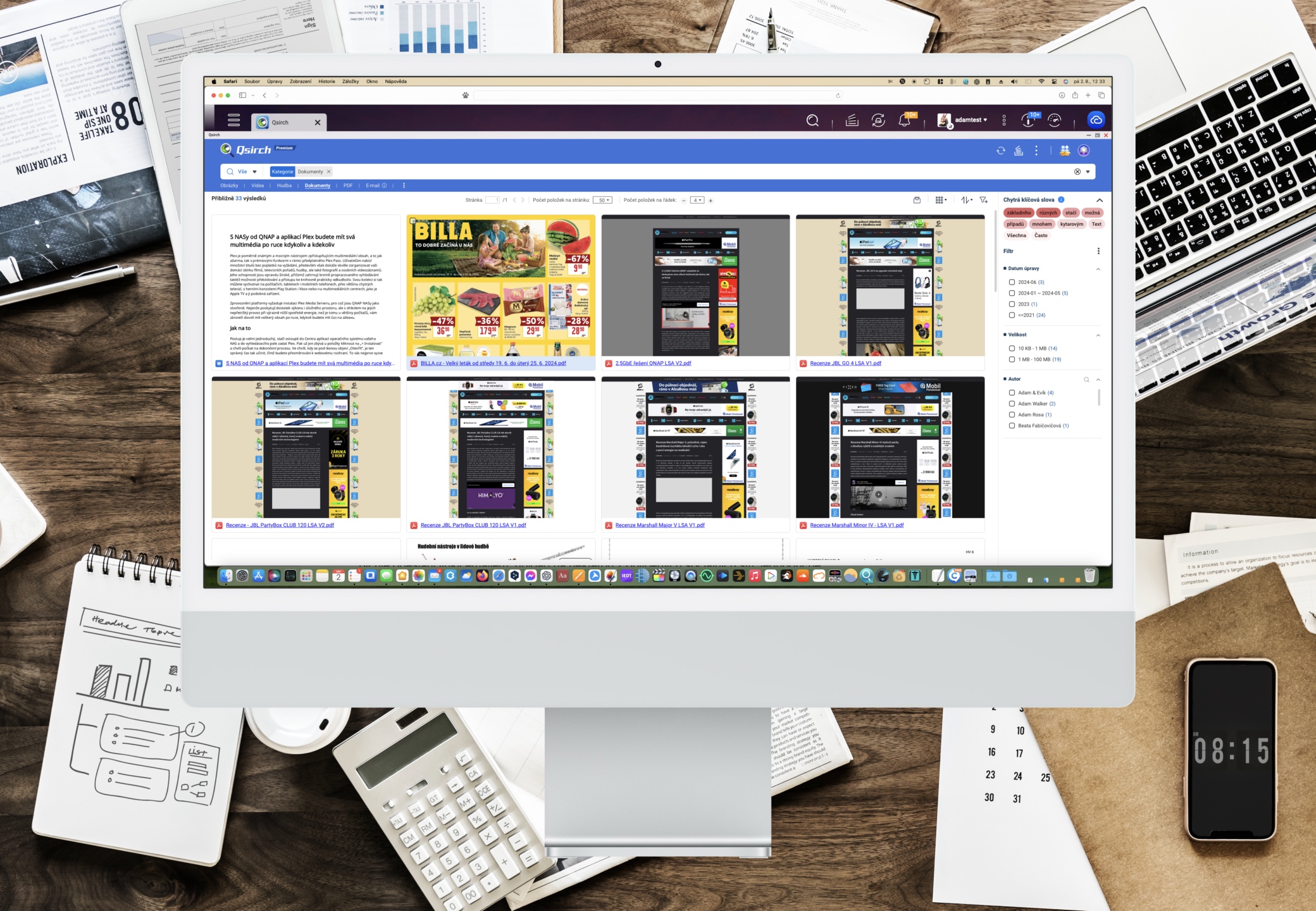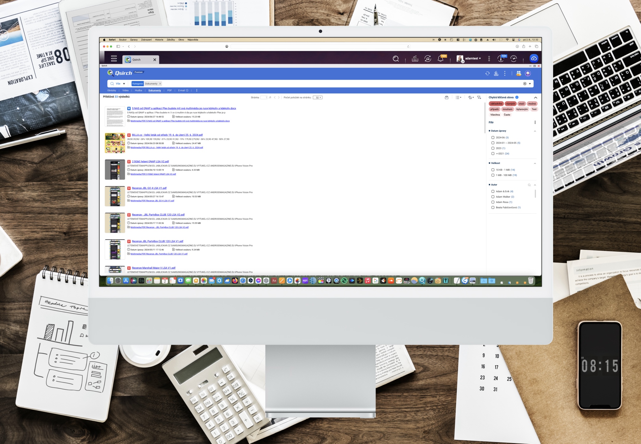 Hledání patřičného dokumentu v prostředí Qsirch se podobá práci s webovými vyhledávači. Kromě nadmíru přehledného zobrazení zahrnujícího rovnou odkaz na vybraný soubor, jež se po kliknutí otevře ve FileStation, se mohou osvědčit Chytrá klíčová slova nebo selekce definující datum úpravy, velikost a autora. Pakliže zadání specifikujete blíže, dokáže aplikace v nalezených souborech zvýraznit výskyt termínů, čímž ještě více usnadňuje orientaci. Pokud k uchování používáte převážně PDF, lze rovnou vyloučit ostatní formáty. Platí-li u vás totéž spíše pro texty ve Wordu, případně tabulky v Excelu nebo prezentace v PowerPointu, pak máte k dispozici, jak již bylo řečeno, i tento způsob filtrování.
