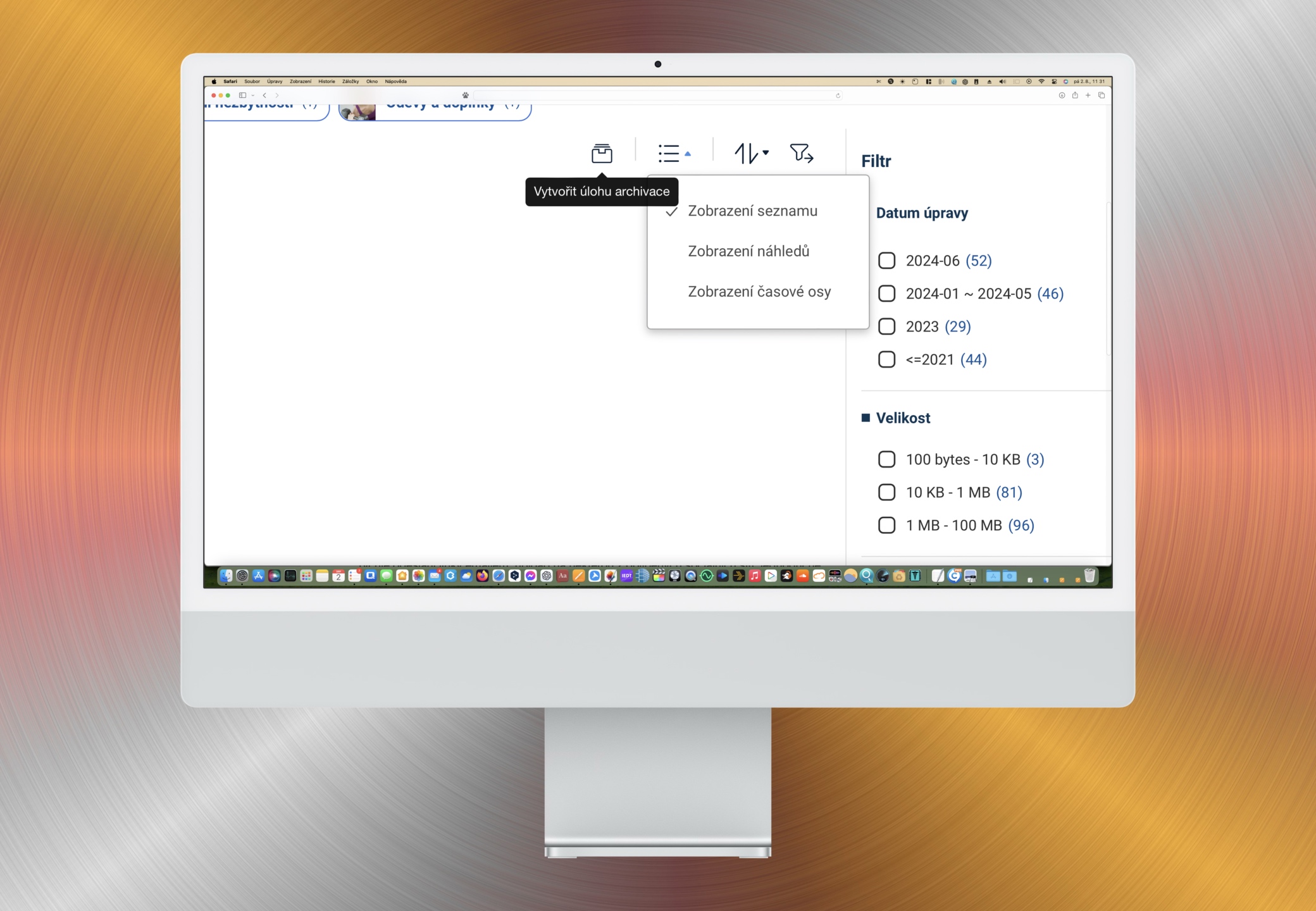 Zaměříme-li se na obrázky po klepnutí na odkaz na sebe jako první upozorní výsledky identifikované umělou inteligencí, jež s ohledem na vaši sbírku nabídne rozčlenění typu Dokumenty, Snímky obrazovky, Zvířata, Zeleň, Lidé, Potraviny, Elektronická zařízení a další. Níže si pak lze vybrat počet snímků na stránku, vytvořit úlohu archivace, s níž otevřete Qfiling, zvolit si mezi zobrazením seznamu, náhledů a časové osy, ale též určit podobu řazení, případně skrýt postranní panel s filtry. Ten osobně vnímám jako jeden z nejužitečnějších prostředků detailního třídění. Kromě všech již zmíněných příznaků, zde totiž jsou k dispozici parametry jako: expoziční doba, clonové číslo, ohnisková vzdálenost, nastavení citlivosti ISO, ale také omezení podle konkrétního objektivu, značky i modelu fotoaparátu a nechybí ani podmínění tomu, zda byla fotografie pořízena s bleskem, či nikoli.