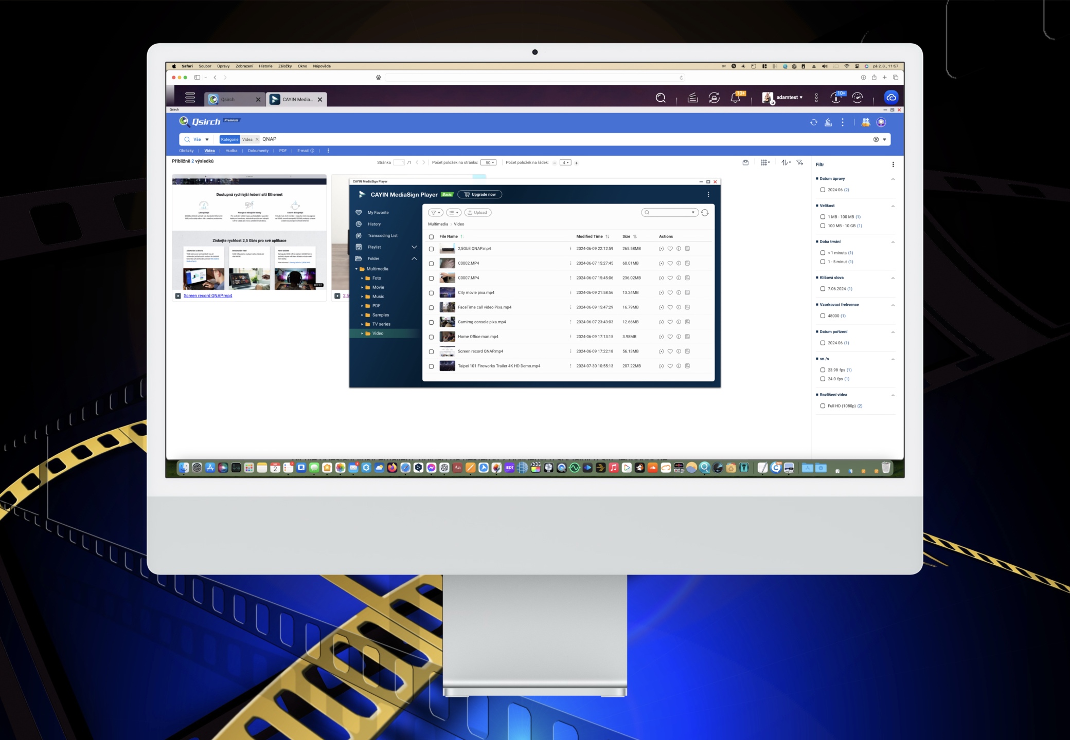 S videozáznamy máte po ruce obdobné nástroje jako u obrázků, jen mezi filtry najdete kromě doby trvání kupříkladu vzorkovací frekvenci zvukové stopy, počet snímků za vteřinu či rozlišení. Opět zde nechybí postranní náhled s podrobnostmi i návrhy a dvojitým kliknutím se propracujete k samostatnému oknu Media Viewer, kde se mezi možnosti řadí aktivace titulků, jsou-li součástí, samozřejmě ovládání hlasitosti, ale mimo alternativy setrvání u původní varianty rovněž přínosné překódování za provozu, a to od 240p až po 1080p. Pakliže narazíte na nepodporovaný formát, bude vám nabídnuta instalace Video Station a CAYIN MediaSign Playeru, u nějž máte na výběr mezi licencí Basic aktuálně zdarma nebo Plus za 11,99 amerických dolarů.