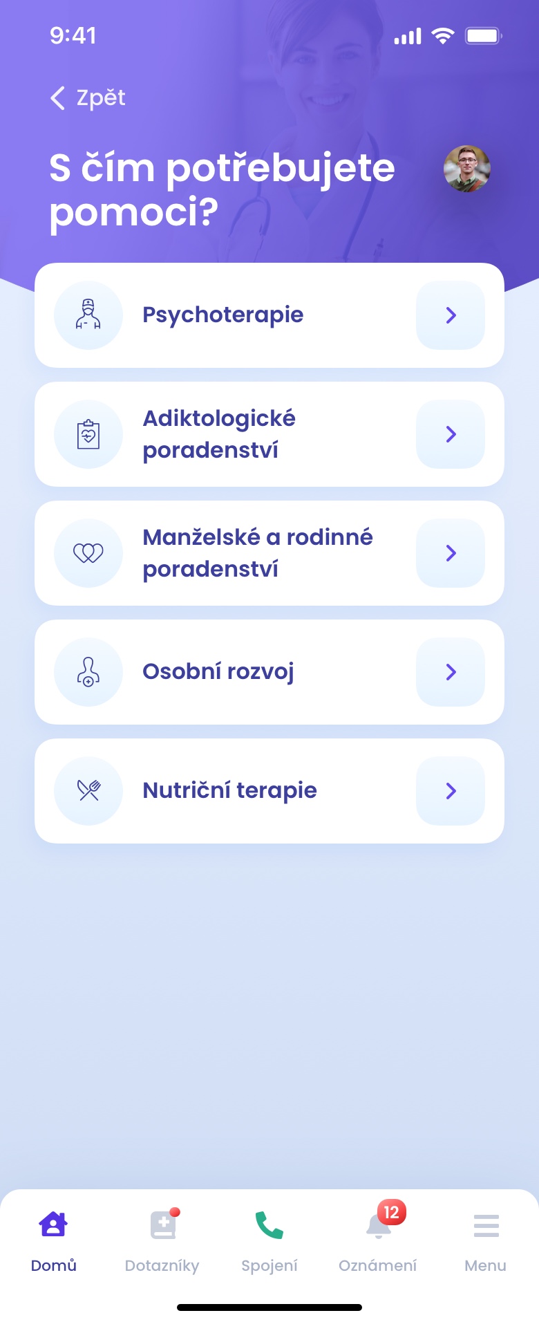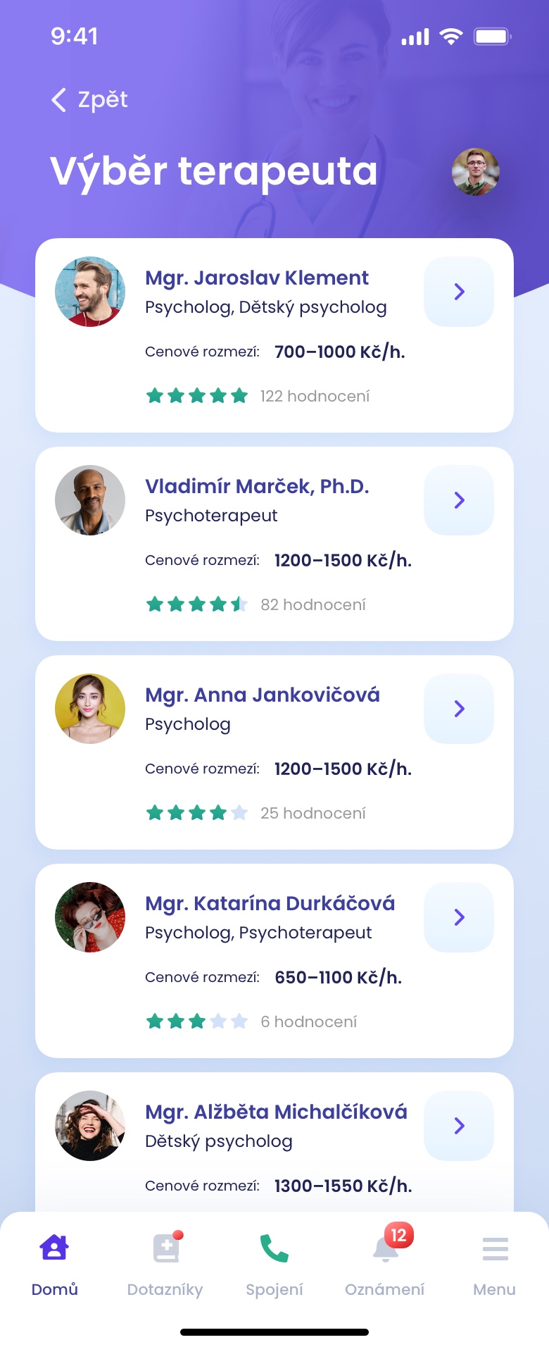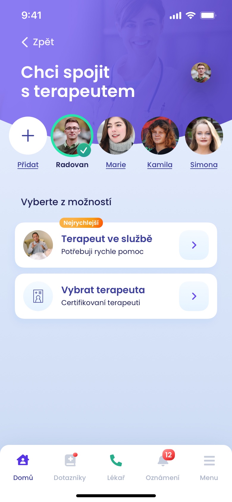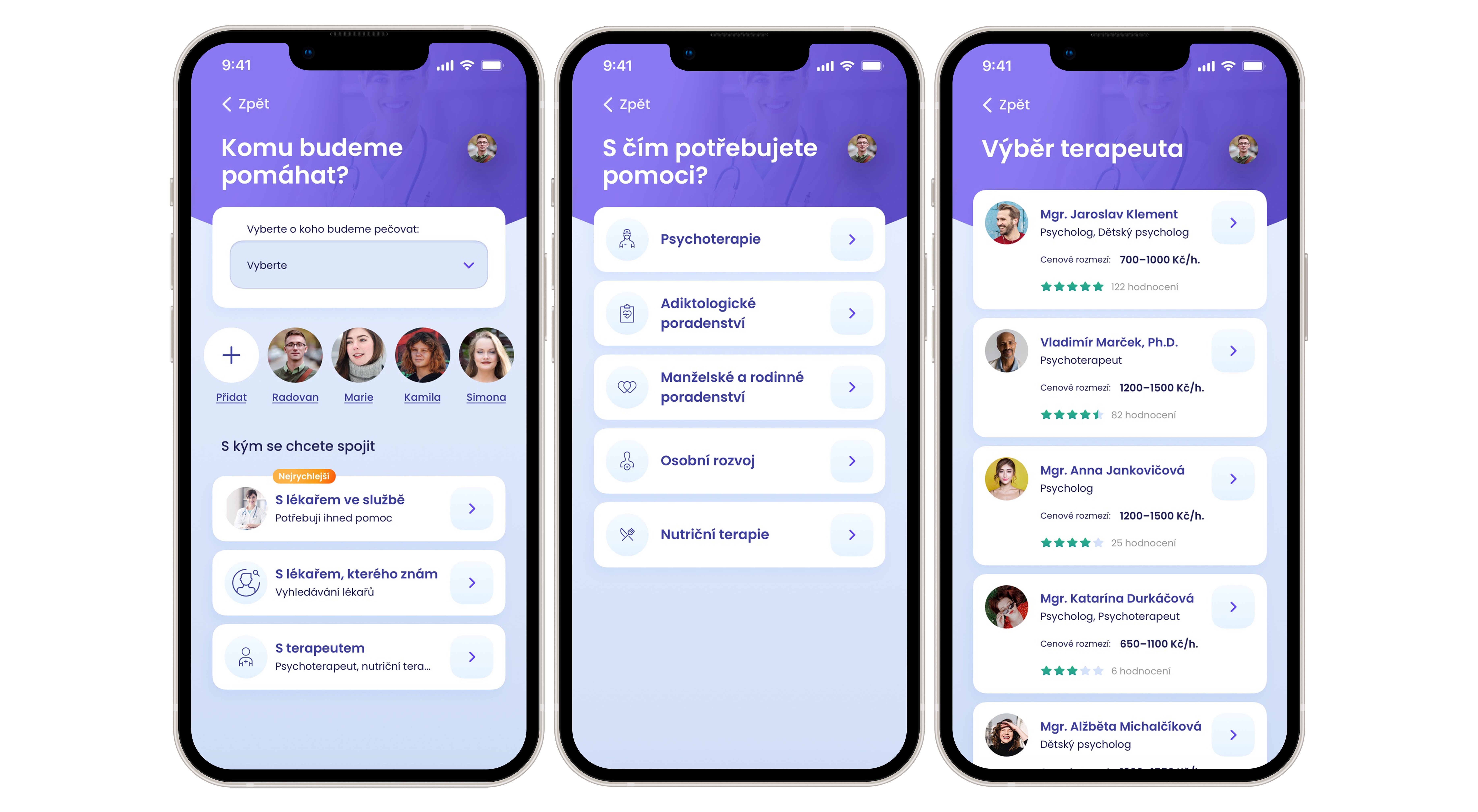 Pokud klienti nemají potřebu okamžité konzultace, mohou si po přihlášení do aplikace vybrat specialistu podle svých potřeb a preferencí. K dispozici je široká nabídka certifikovaných psychoterapeutů, psychologů ve zdravotnictví i školních psychologů, kteří nabízejí individuální, rodinné a párové terapie pro dospělé, děti i dospívající. Nejčastější témata, se kterými se lidé na odborníky obracejí, zahrnují deprese, úzkosti, vyhoření, pocity samoty nebo potíže ve vztazích. U většiny terapeutů existuje možnost proplacení části nákladů zdravotní pojišťovnou.