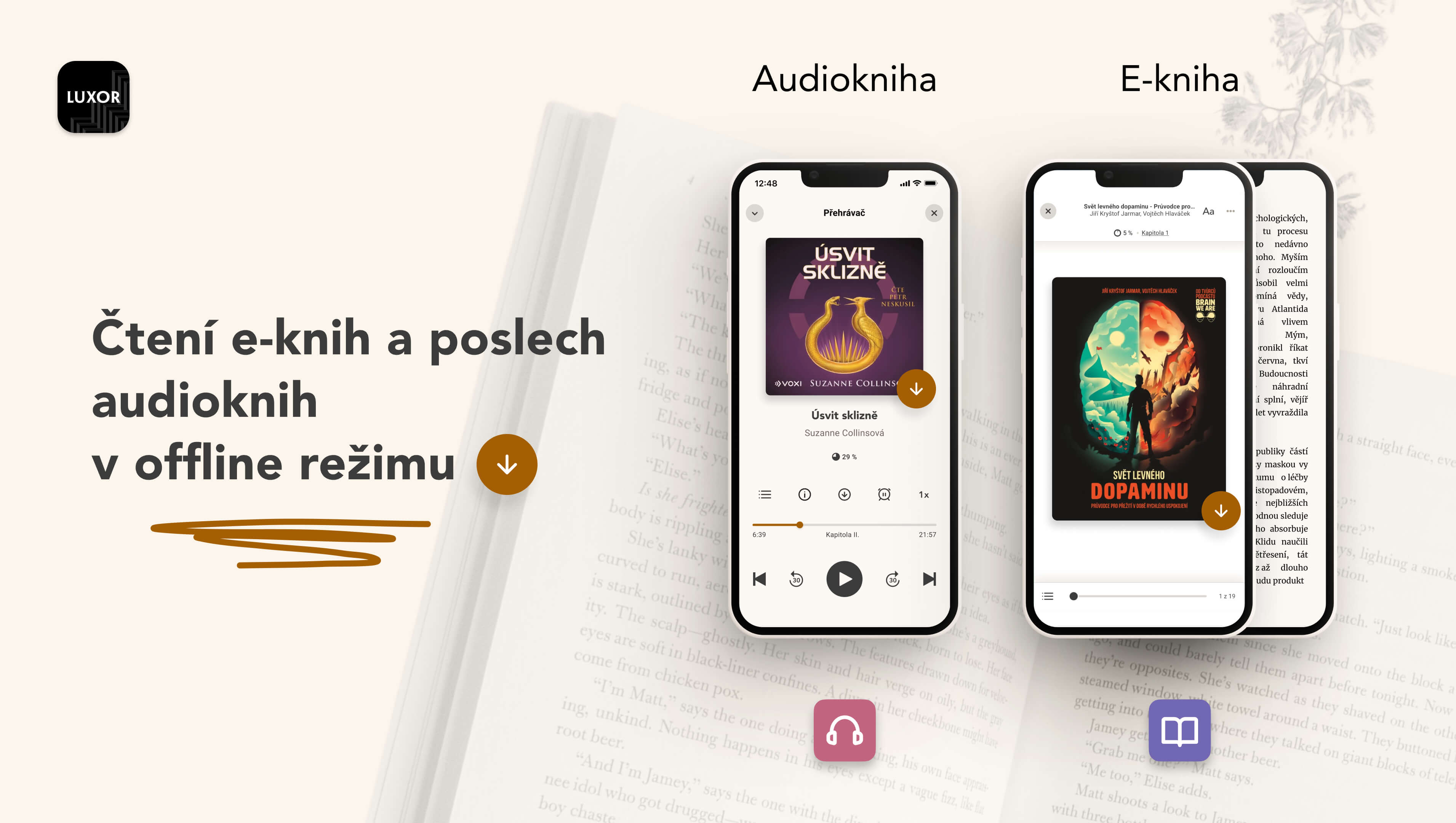 Značka Luxor si své jméno na českém trhu buduje už řadu let a s aplikací Můj Luxor jasně ukazuje, že na digitální vlně surfuje s lehkostí. Uživatelé v ní najdou nejen rozsáhlý výběr e-knih a audioknih, ale hlavně prostředí, které je přehledné, rychlé a maximálně intuitivní. Stačí pár kliknutí a z mobilu se stává čtečka i přehrávač v jednom. Ukázky, nákupy i samotné čtení a poslech zde samozřejmě zvládnete během pár vteřin.