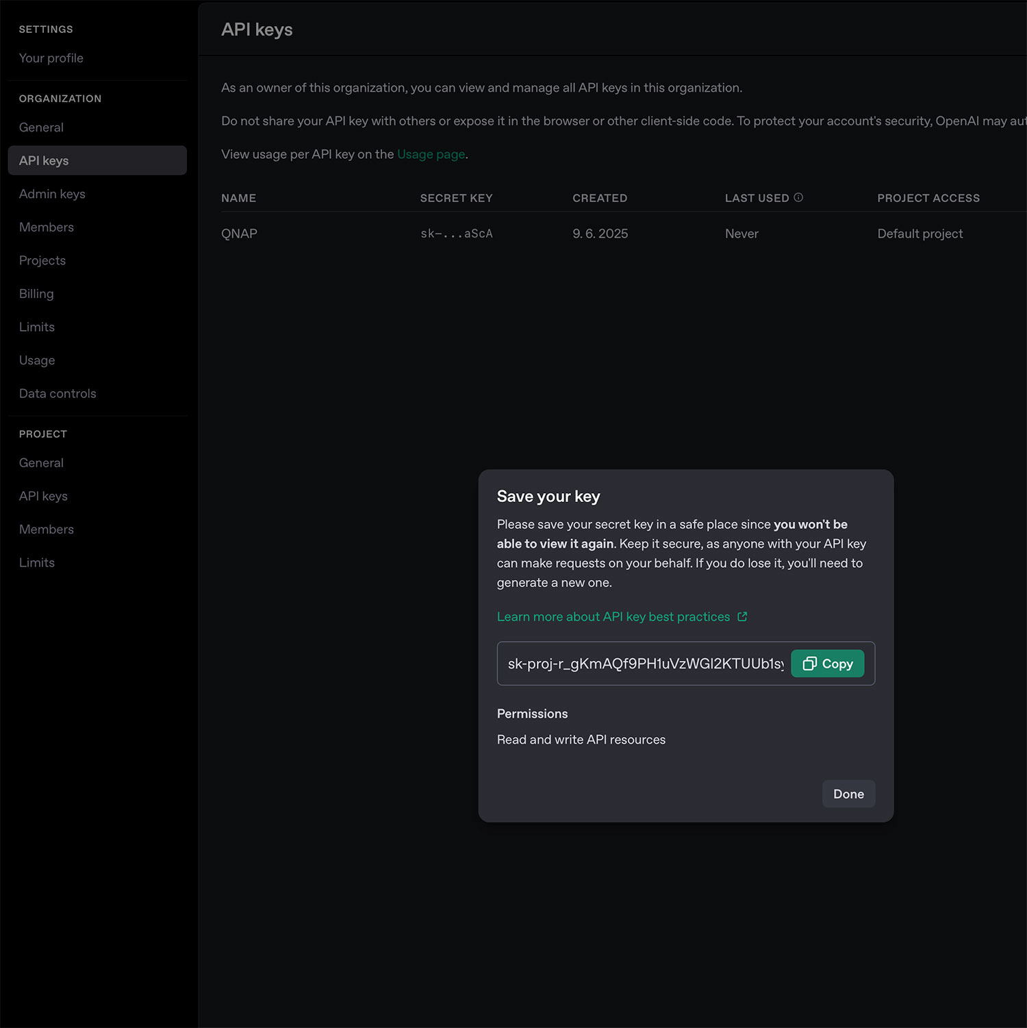 Samotné propojení s vybraným poskytovatelem jazykových modelů je velmi snadné a nevyžaduje žádné speciální znalosti. Pokud jste někdy používali ChatGPT nebo Google Gemini, budete příjemně překvapeni, jak jednoduše QNAP integruje tyto technologie přímo do vašeho NAS. Stačí získat API klíč a vložit ho do nastavení RAG Search. V případě OpenAI a jeho ChatGPT je pak potřeba dobít kredit alespoň na 5 dolarů, protože se využívá API. Jinak Není třeba žádné složité programování ani speciální konfigurace serveru. To ocení zejména malé a střední firmy, kde často není k dispozici specializovaný IT tým.