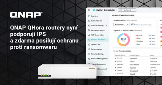 Společnost QNAP® Systems, Inc., přední inovátor v oblasti výpočetních, síťových a úložných řešení, dnes oznámila, že její vysokorychlostní routery (směrovače) řady QHora — QHora-301W, QHora-322 a QHora-321 – budou ve firmwaru verze 2.6.0 podporovat funkci Intrusion Prevention System (IPS). Tato funkce je aktuálně dostupná bez licenčních poplatků, což umožňuje podnikům posílit svou první linii obrany proti útokům ransomwaru pouhým zapnutím služby QuWAN SD-WAN.