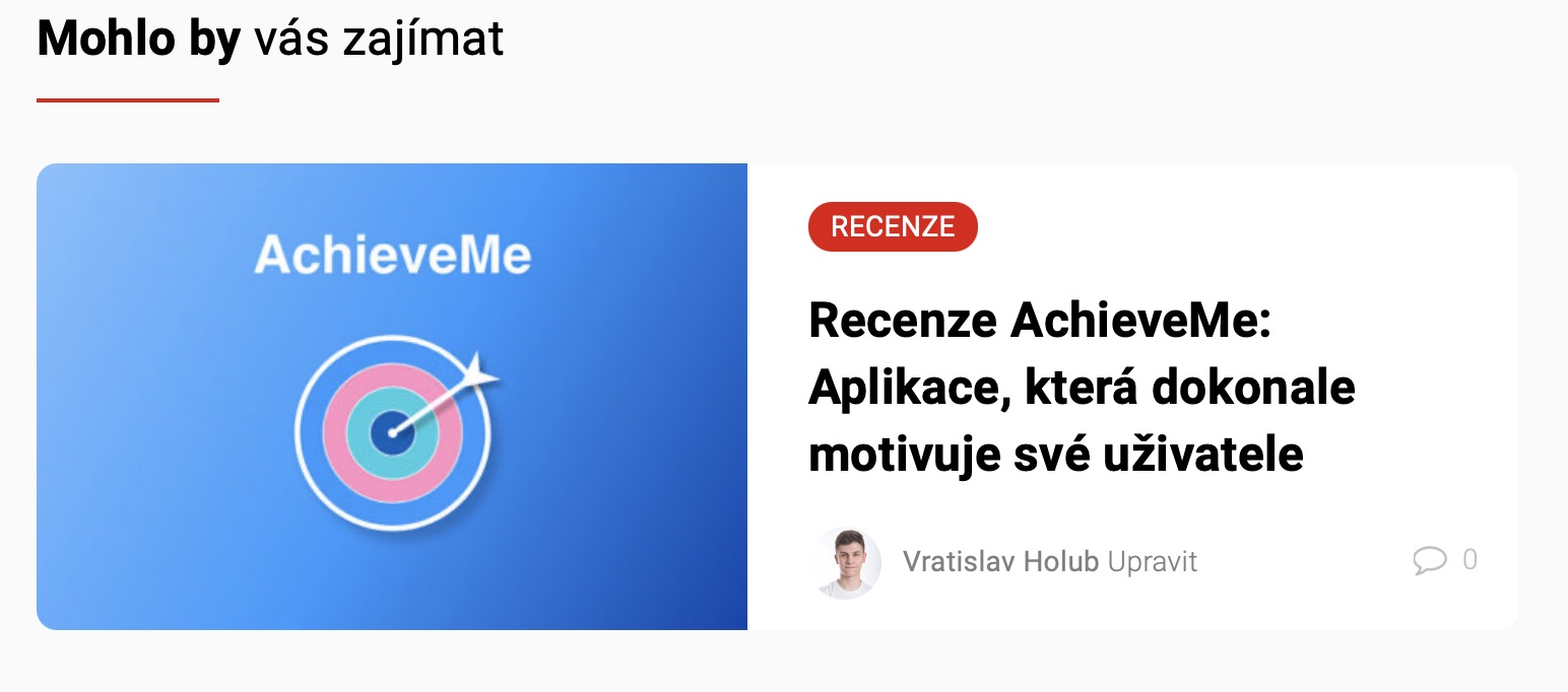 Aplikace AchieveMe je skutečně zajímavým řešením, které stojí minimálně za vyzkoušení. Hlavní rozdíl oproti konkurenčním programům spočívá hlavně v tom, že nás aplikace dokáže udržet na hranici maximální produktivity. Za zmínku také rozhodně stojí, že čím víc budeme aplikaci používat, tím lepších výsledků dosáhneme a budeme tak mít ze sebe ještě větší radost – což se opět promítne na naší produktivitě. Zajímavostí navíc je, že za aplikací stojí český vývojář Cyril Čermák, který při vývoji pracuje s komunitou. Máte nějaký zajímavý nápad? V rychlosti se o něj můžete podělit a možná se ho v následující aktualizaci dočkáte.