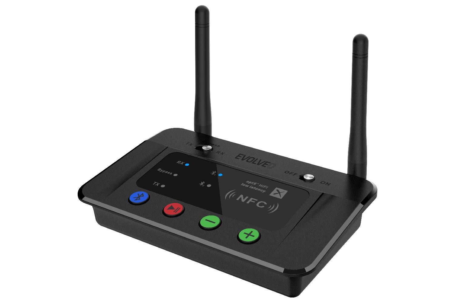 EVOLVEO AudioConverter XS nabízí široké možnosti převádění audio signálů z různých typů propojení. Zejména mezi optickým kabelem a analogovým (DAC převodník 16bit/96kHz) a naopak ((ADC převodník 16bit/48kHz). Díky podpoře Bluetooth připojení pak umí bezdrátově posílat signál z optického nebo analogového vstupu až na dvě Bluetooth zařízení současně (24bit pomocí S/PDIF). AudioConverter XS umí také přijímat bezdrátový signál Bluetooth a převádět je na signál vedený optickým nebo analogovým kabelem. Takto je možné propojit například televizor s domácí HI-FI stereo soupravou, sluchátky a dalšími produkty pro reprodukci zvuku, jako jsou přenosné reproduktory nebo soundbary. Pomocí EVOLVEO AudioConverter XS je také možné propojit například mobilní telefon jako zdroj zvukového signálu s audiosystémem, který nemá bezdrátové připojení. Pro snadné párování podporuje AudioConverter XS také NFC připojení.