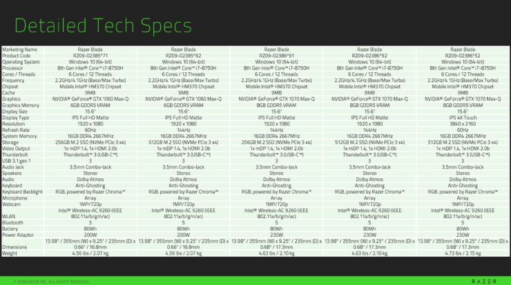 Specifikace notebooku Razer Blade 15.6″ 2018