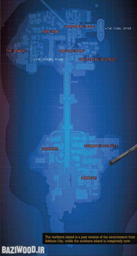 Před pár dny byl oficiálně světu představen nový titul s Batmanem, a to Batman: Arkham Origins, který nás zavede ještě před události Arkham Asylum. Nyní se na internetu objevila mapa a dává tušit, jak velká asi hra bude. Horní část, tedy severní ostrov je ten který známe z Arham City. Druhý, tedy jižní ostrov je nový a půjde o moderní podobu Gothamu, kterou jsme v Arham City viděli jen na dálku, takže nás hra zřejmě zavede i k Wayne Tower.