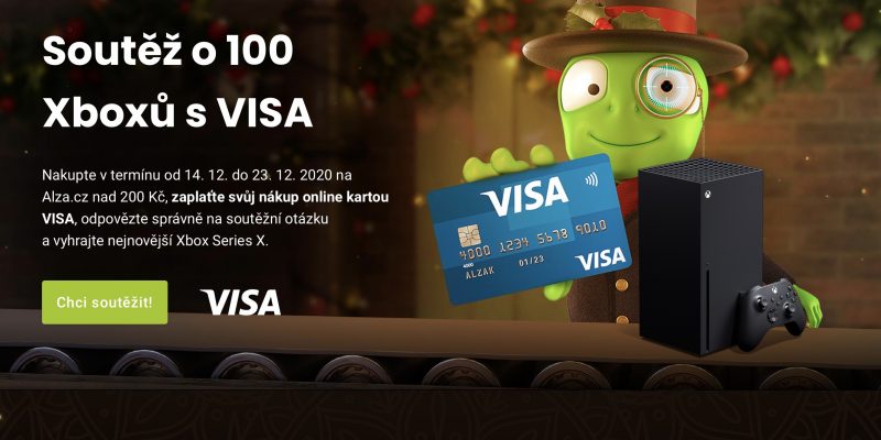 Zapojení se do soutěže je naprosto jednoduché. Stačí na Alze v termínu od 14. do 23. prosince nakoupit nad 200 Kč, zaplatit svůj nákup online kartou VISA, odpovědět správně na jednoduchou soutěžní otázku a pak už jen doufat, že se na vás usměje štěstí v každodenním losování. Pokud ano, budete jedním z deseti šťastlivců daného dne, kteří si od Alzy Xbox Series X odnesou. Jak prosté, že?