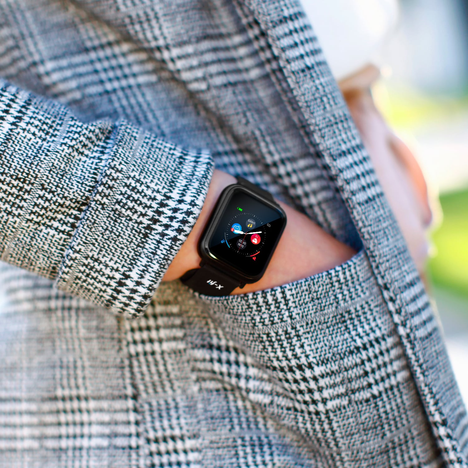 X-fit Watch nabízejí 2,5D zaoblený displej o velikosti 1,3 palců. Obstarají všechny nejčastěji používané funkce jako příchozí zprávy a hovory, ovládání hudby nebo aktuální informace o počasí. Na všechny tyto činnosti již není třeba vytahovat telefon z kapsy. Tělo hodinek je vyrobeno z hliníku, a proto jsou bytelné, ale přitom lehké.