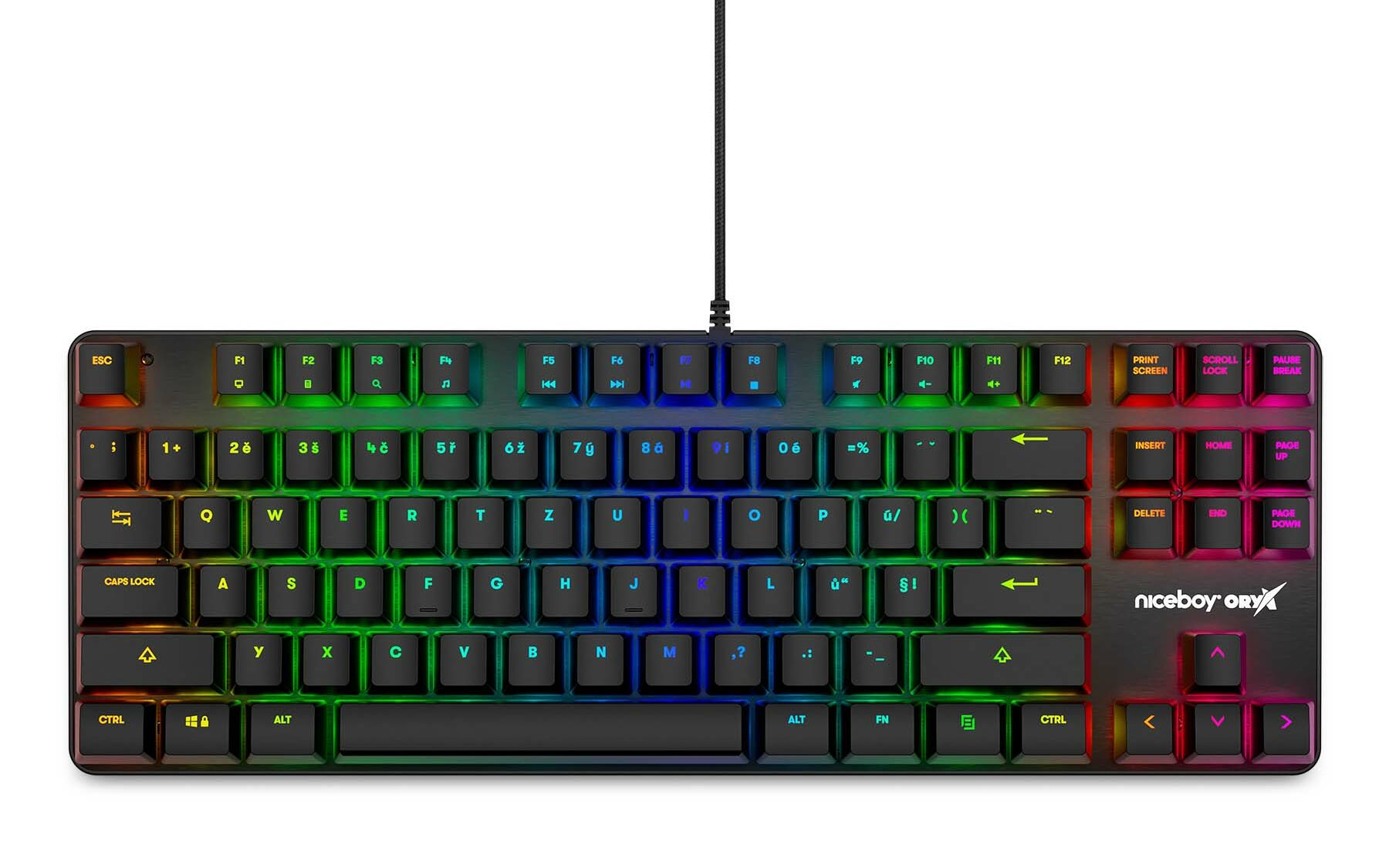 Tisková zpráva: Značka Niceboy představuje další přírůstek do řady svého herního příslušenství – mechanickou klávesnici Niceboy ORYX K500X. Klávesnice je v kompaktním TKL designu (bez numerického bloku), což je atraktivní zejména pro hráče, kteří ocení větší prostor pro flexibilní pohyb myši. Klávesnice je osazena ověřenými spínači OUTEMU Red a software ORYX umožňuje vlastní nastavení maker a podsvícení.