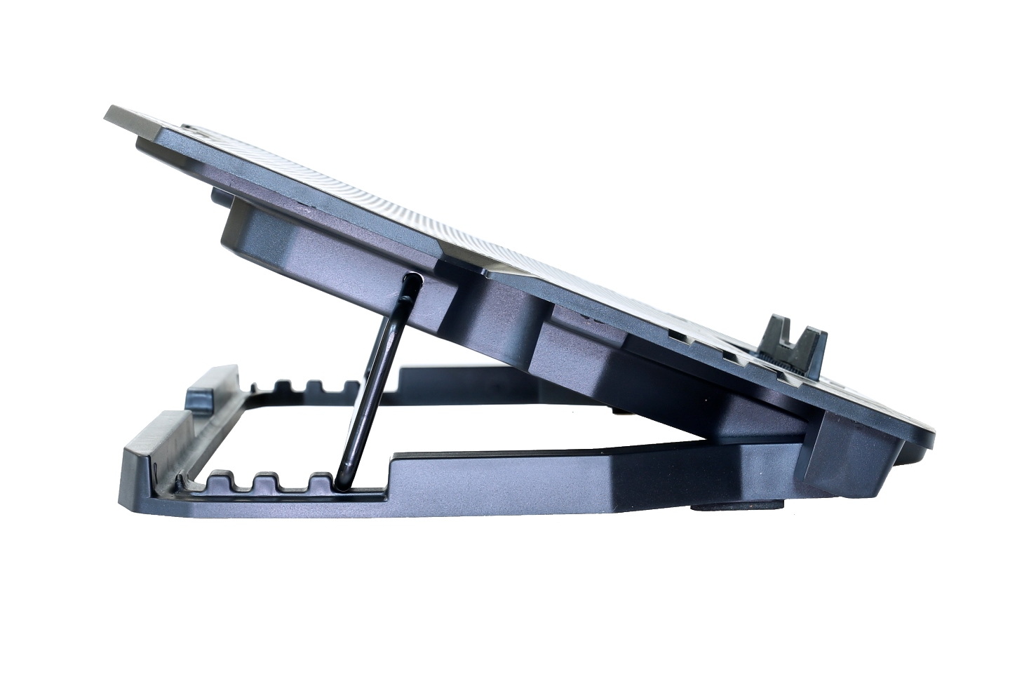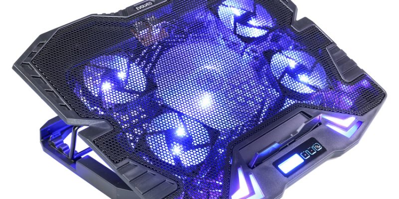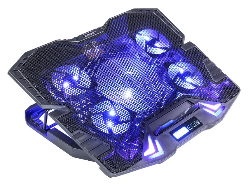 Druhá novinka má šest ventilátorů o průměru 60 mm s rychlostí 2 500 RPM, modré led podsvícení a velmi tichý chod, pouze 10 dBA. Rozložení ventilátorů zajistí rovnoměrné chlazení spodní části notebooku, včetně nevíce ohřívané části, kterou je prostor zdroje. Tento podstavec je určen pro notebooky do velikosti 15,3″a nabízí pět poloh sklonu.