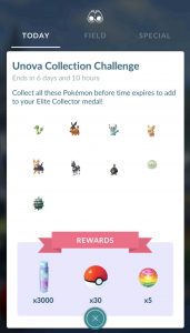 Nový druh výzev oskytne hráčům přehledný seznam příšerek, které mají v daném časovém úseku za úkol pochytat. Nové úkoly se zabydlí na domovské obrazovce mezi ostatními časovanými výzkumy. První ze sběratelských výzev by do hry měla dorazit již dnes. Pro její splnění budete muset pochytat množství Pokémonů z páté generace hlavní série her. Všechny musíte najít v „divočině“, nebudou se počítat Pokémoni vyvinutí z jejich předchozích stupňů, vyměnění Pokémoni ani ti, co se vám mohou vyklubat z vajíček.