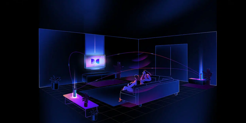 - Dynamické vyvažování zvuku – Zvuk se inteligentně šíří z reproduktorů televizoru do jednotlivých bezdrátových reproduktorů a dynamicky optimalizuje zvukový signál na základě možností a umístění všech dostupných reproduktorů. Díky tomu lze zvukový obraz upravit tak, aby si posluchači mohli vždy vychutnat nejlepší výkon ve své třídě.