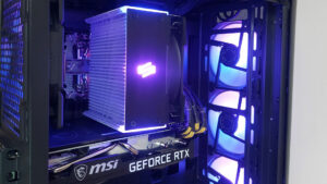 Sestava je perfektně vybalancovaná, nabídne prostorné SSD úložiště Intel 670p s kapacitou 1 TB a vysokou rychlostí čtení až 3500 MB/s a zápisu 2500 MB/s, více než dostatečný 550W napájecí zdroj Gigabyte P550B s certifikací 80 PLUS Bronze a výkonný systém chlazení – nejen v podobě vzduchového chladiče procesoru SilentiumPC Fera 5, ale i díky osazení do kvalitní skříně SilentiumPC Ventum VT4V Evo s podsvícenými 120mm ventilátory stejného výrobce a prachovými filtry pro snadnou údržbu. Skříň vás zaujme na první pohled nejen majestátním provedením, ale také praktickými vlastnostmi. Přední panel je plně perforovaný a trojice ventilátorů na vstupu a jeden v zadní části tak drží teploty zbývajících komponent na uzdě. Pevné tělo skříně perfektně lícuje a eliminuje šíření vibrací ventilátorů ven.