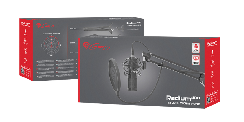 Přemýšlíš nad tím, jak vylepšit svůj kanál YouTube nebo zlepšit kvalitu svého on-line streamu? V takovém případě něco pro tebe máme. Genesis Radium 400 je vysoce kvalitní studiový mikrofon s bohatým vybavením a funkčností, který uspokojí nejen začátečníka, ale také pokročilého streamera. Balení obsahuje množství užitečných doplňků jako jsou: stolní držák s ohebným ramenem, pop-filtr, anti-vibrační košík a pěnová houbička.