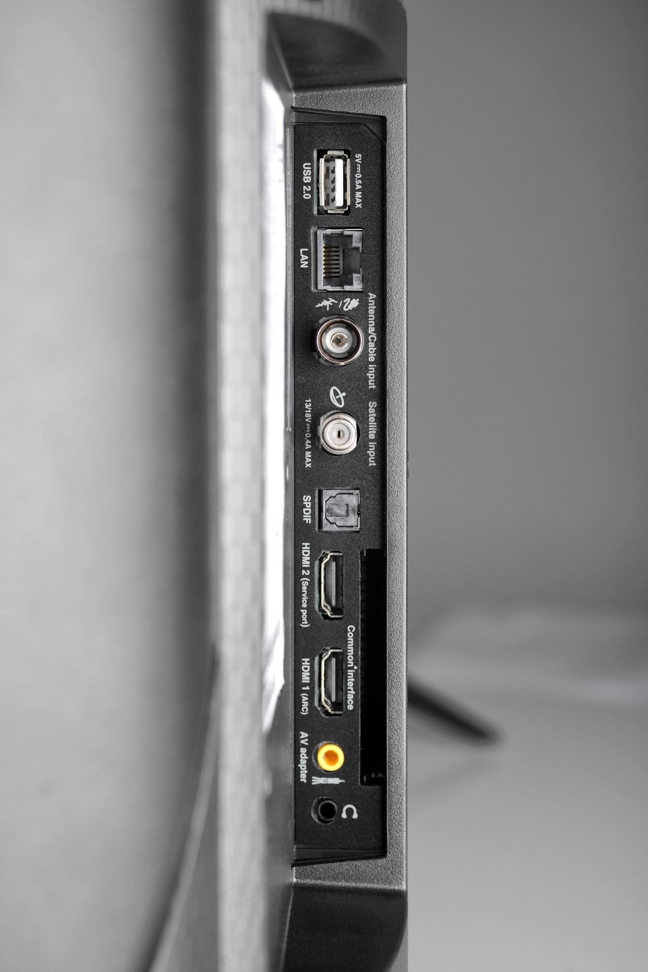 Zabudovaná obrazovka má rozlišení HD Ready, což znamená 1366 x 768 bodů, přesná úhlopříčka je 31,5″, tedy 80 cm. Televizor pohání čtyřjádrový procesor, který se stará i o příjem hybridního televizního vysílání HbbTV 1.5, zpracování obrazu a také o vstupy výstupy. Ty tu najdete v podobě dvojice HDMI, výstupu na sluchátka, digitálního optického audio výstupu a nechybí ani USB 2.0 a Ethernet (LAN). Na internet se však můžete také napojit přes bezdrátovou Wi-Fi (802.11 až „n“, 2,4 GHz) a zabudována je i dvojice reproduktorů napojená na zesilovač o výkonu 2x 5 W (RMS). Reproduktory, jak je zvykem, vyzařují do podstavce.