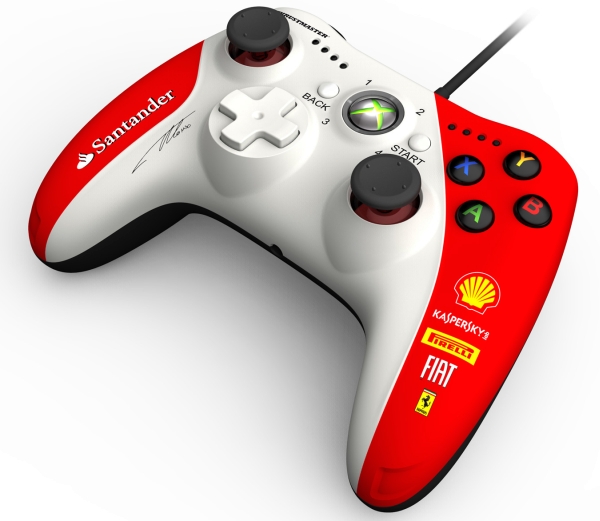Jak samotný název napovídá, tak ovladač je laděn dle známé stáje Ferrari. Je tedy primárně určen pro maximální požitek z hraní závodních her. Svůj účel plní skvěle. Nese veškerá důležitá loga, jež jsou k tomuto týmu vázána. Tedy Fiat, Ferrari, Santander, Kaspersky, Shell a Pirelli. Stylově je přizpůsoben tak aby velmi připomínal ovladač ke konzoli Xbox 360.